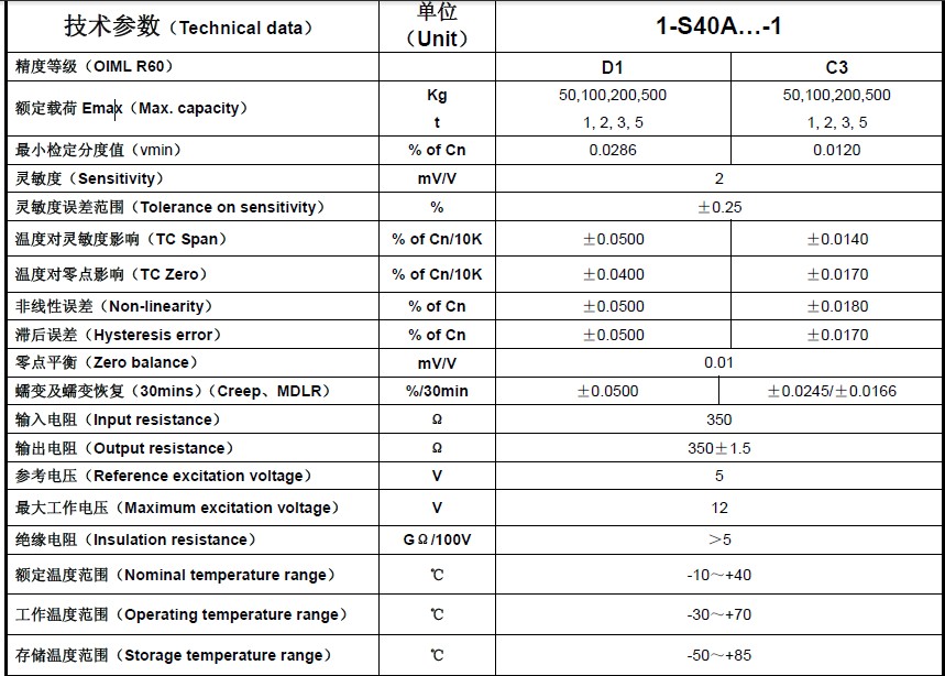 S40A稱重傳感器特性: JfL廣州南創電子科技有限公司