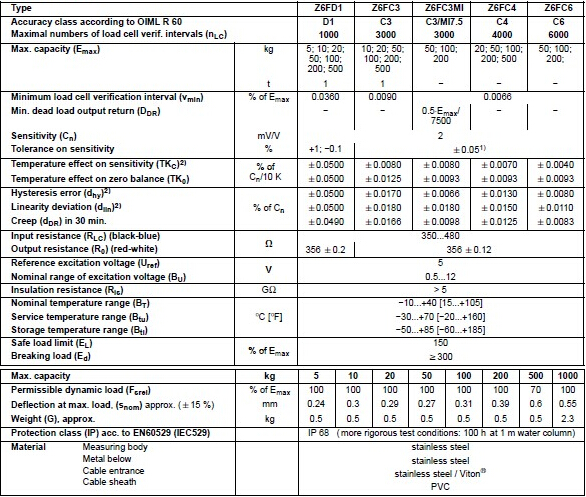 德國HBM Z6FD1系列稱重傳感器所有量程如下:MVf廣州南創電子科技有限公司