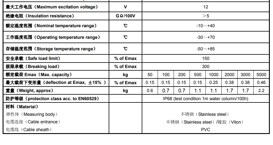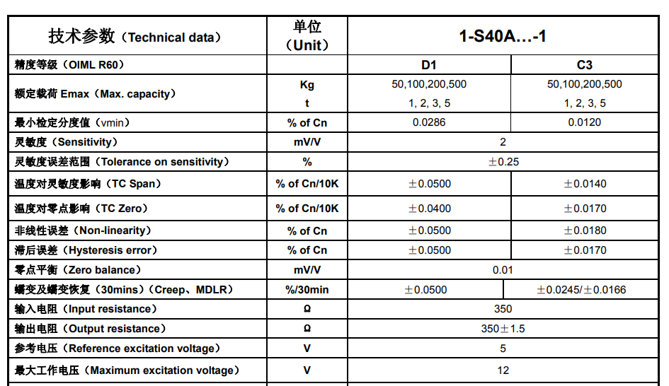德國HBM稱重傳感器S40A 2t產品技術參數:F5v廣州南創電子科技有限公司