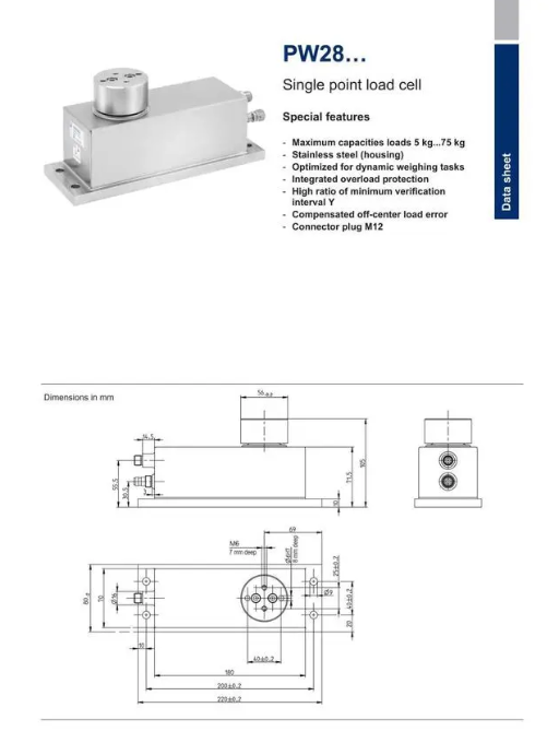 最小檢定分度值高達 20000,PW28 單點稱重傳感器完全滿足 C3 精度等級要求,可為您提供非常精確的測量結果。不銹鋼外殼固有的高剛度,使其非常適用于靜態和動態應用。IP67 防護等級可用于惡劣的工業環境。所有PW28稱重傳感器,無論其量程大小,均內置過載保護,可防止意外過載。2S2廣州南創電子科技有限公司