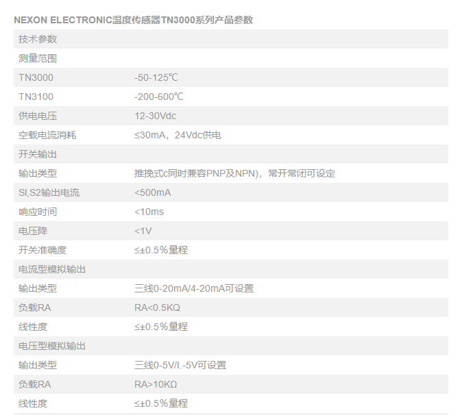 美國NEXON溫度傳感器型號類別技術參數選型安裝等資料信息,如果有關