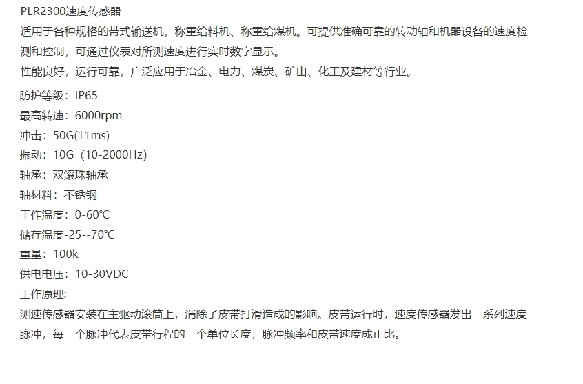 Saimo賽摩測速傳感器PLR2300拉姆齊Ramsey皮帶秤用轉速傳感器