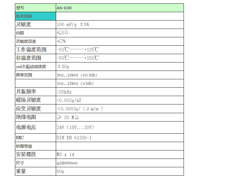 德國申克AS-030加速度傳感器更多產品詳細資料請點擊:德國申克速度傳感器,進入頁面可查找AS-030加速度傳感器型號、申克加速度傳感器參數選型資料,以及德國schenck振動加速度傳感器具體安裝技術指導信息。4sM廣州南創電子科技有限公司