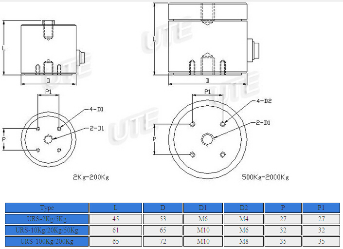 臺灣UTE URS系列稱重傳感器的規格圖:bkP廣州南創電子科技有限公司