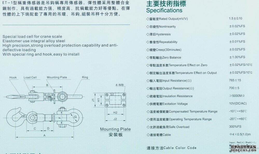 ET-1-1T稱重傳感器技術參數:xVj廣州南創電子科技有限公司