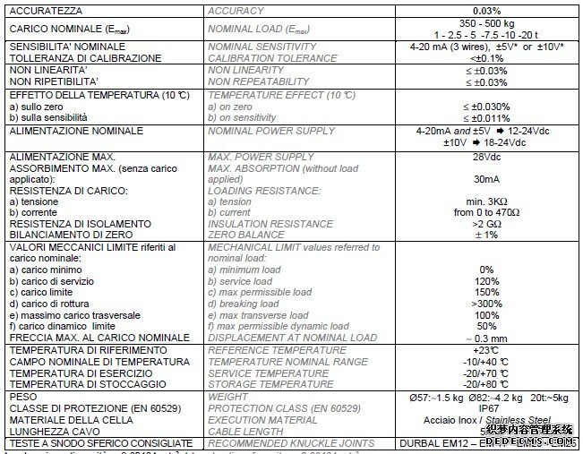 通過焊接連接的彈性體膜和兩個膜的上部他們是在一個水平方向空心柱型剛性,相同的電路連接線的防護玻璃環形風道。防止側向力的損害以及測量方向是非常靈活的以便不產生測量元件的工藝水平力,特別是意大利AEP稱重傳感器
