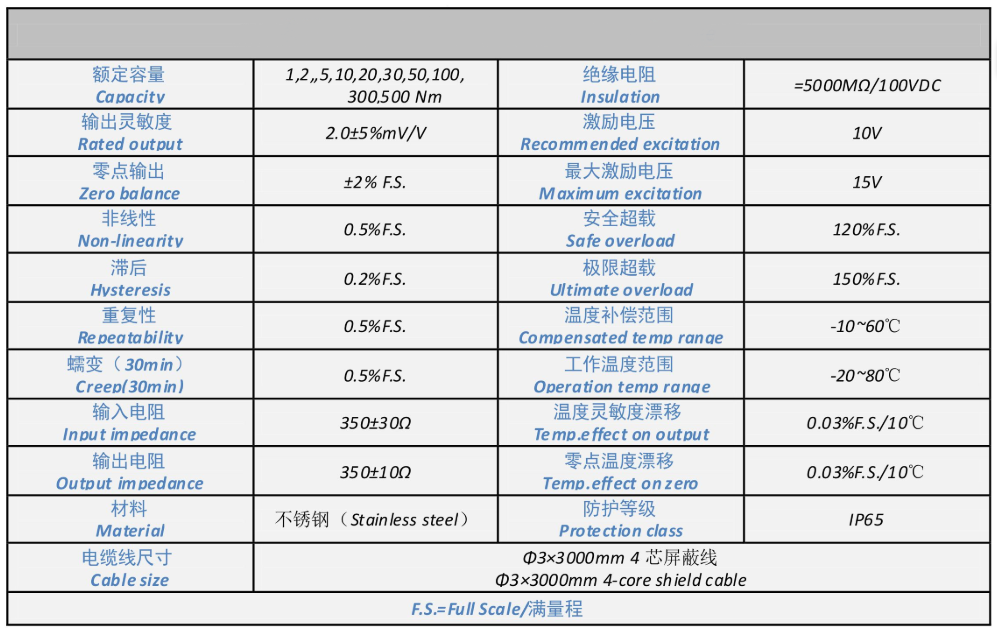 F1Y廣州南創電子科技有限公司英國Applied Measurements Ltd扭矩傳感器技術參數圖:F1Y廣州南創電子科技有限公司
