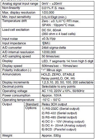 ±2mV/V±1% ,LC驗證最小檢定分度:350Ω±1%〜