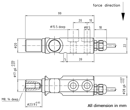 其獨特的應變計設計可提供出色的測量精度和穩定性,并提供最大的過載保護。該傳感器配有直徑為17mm的非旋轉軸承軸頸,通常與客戶提供的滾輪或導輪一起使用。