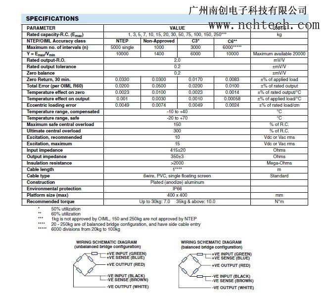 0.0057 0.0074 ±% of rated load/cm額定負載/厘米±%