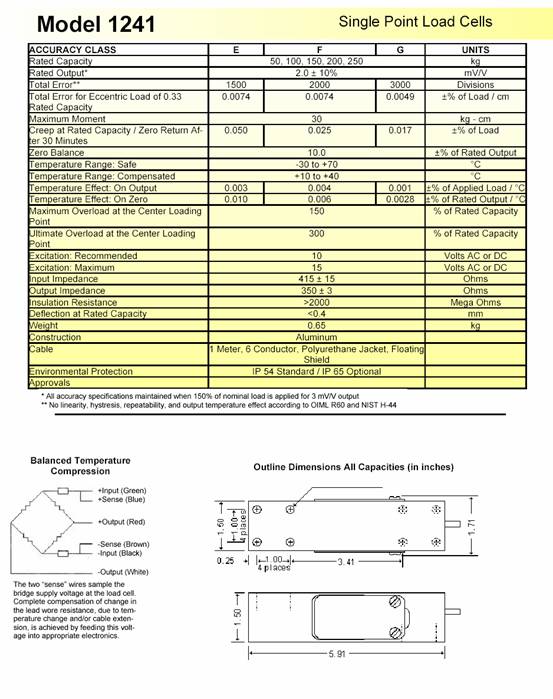 美國特迪亞1241-100kg傳感器技術指標:Pgz廣州南創電子科技有限公司