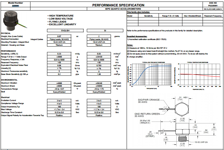 美國Dytran3205M1加速度傳感器的性能規格參考圖:oeT廣州南創電子科技有限公司