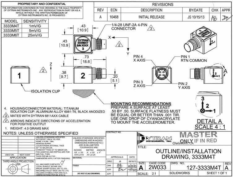 美國Dytran 3333M4T加速度傳感器尺寸圖: