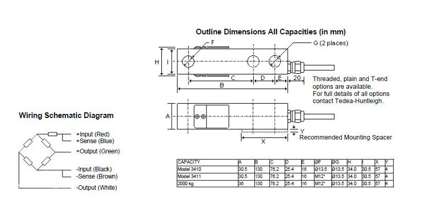 最終超載Ultimate Overload tedea 3410-4000lbs傳感器:300 % of Rated Capacity