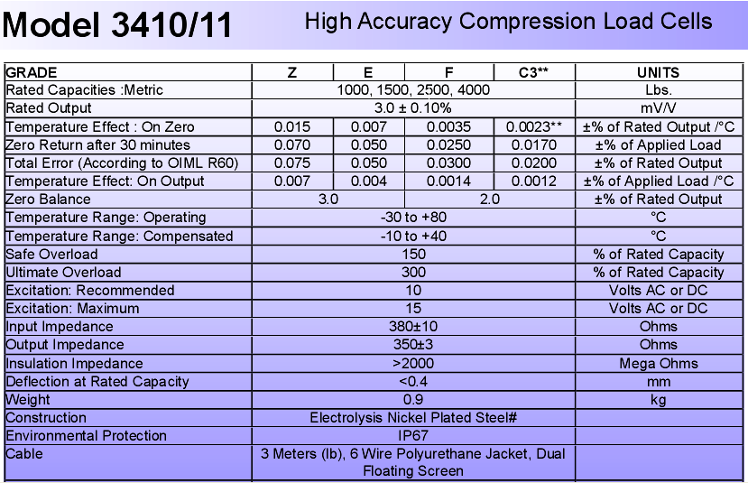 特迪亞稱重傳感器3410-500kg技術指標圖:Xgo廣州南創電子科技有限公司
