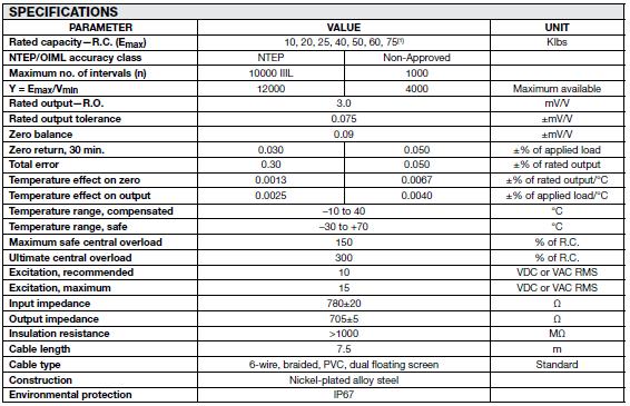 TEDEA -亨特利1241- 100kg稱重傳感器范圍(kg ) :50- 250千克uFe廣州南創電子科技有限公司