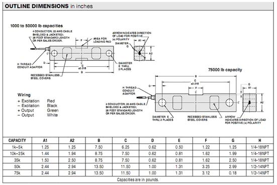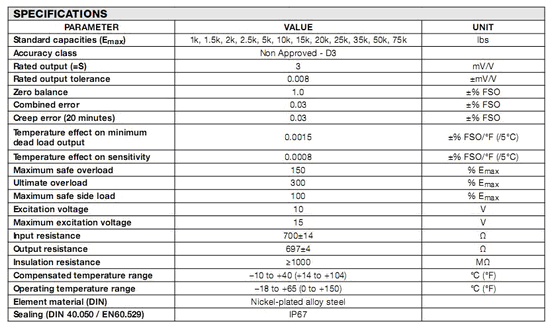 美國Vishay Revere 5203-25klbs稱重傳感器5203系列所有量程如下:P1t廣州南創電子科技有限公司