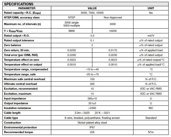 美國特迪亞tedea 3420稱重傳感器產品參數:jyY廣州南創電子科技有限公司