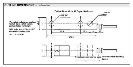 美國特迪亞tedea 3420稱重傳感器產品尺寸:jyY廣州南創電子科技有限公司