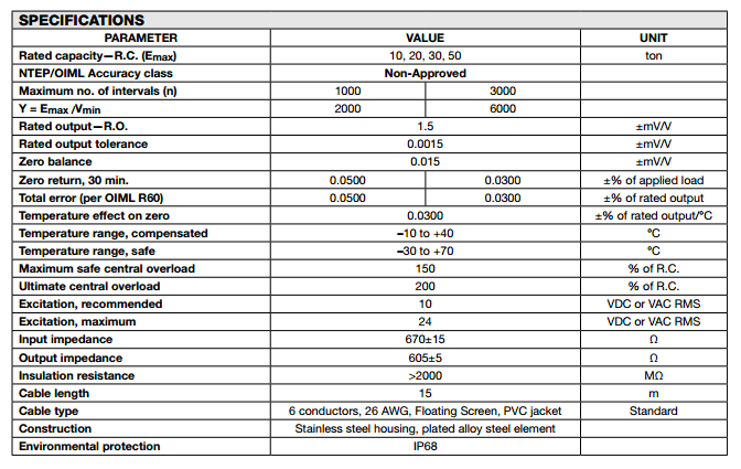 美國特迪亞tedea 121稱重傳感器系列所有量程如下:agJ廣州南創電子科技有限公司