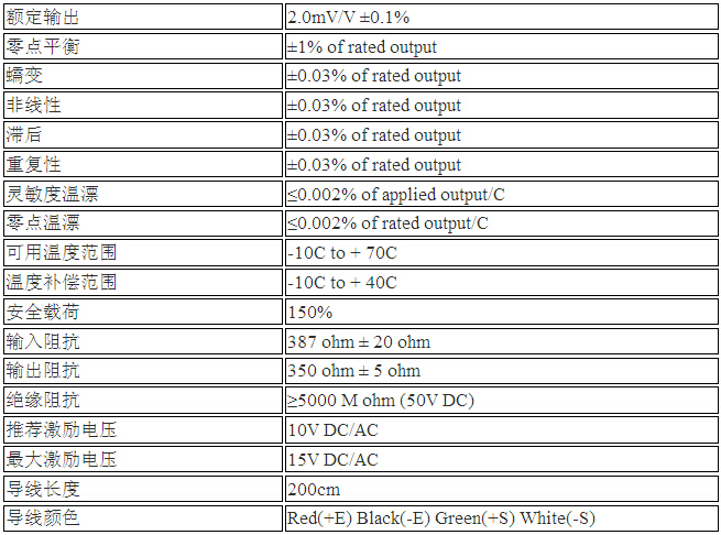 美國Transcell稱重傳感器SBSK-50kg產品參數:XWD廣州南創電子科技有限公司