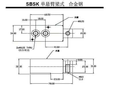 美國Transcell稱重傳感器SBSK-50kg產品尺寸:XWD廣州南創電子科技有限公司