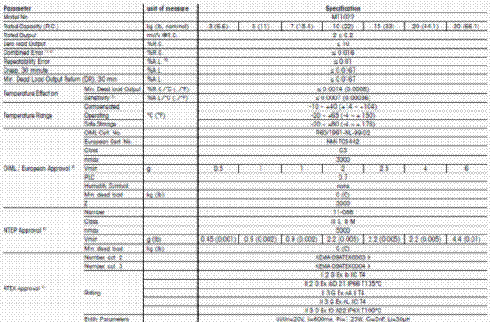 梅特勒托利多Mettler Toledo MT1022稱重傳感器技術指標: