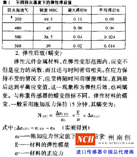 感器工作性能穩定,還要求金屬材料抗微塑變形能力強,即具有較高的彈性極限,因為彈性極限愈高,滯彈性效應出現的愈少。稱重傳感器彈性元件的質量,很大程度上取決于彈性元件的制造工藝,特別是熱處理工藝。這些工藝直接影響到彈性元件的彈性和應力,尤其是滯彈性效應。所謂滯彈性,就是材料在彈性變形范圍內,同時伴有微塑變形,使應力和應變之間不遵循虎克定律,而產生非線性誤差,這種現象稱為材料的滯彈性。其表現形式較多,主要有:彈性滯后、彈性后效(蠕變)、應力松弛等。
