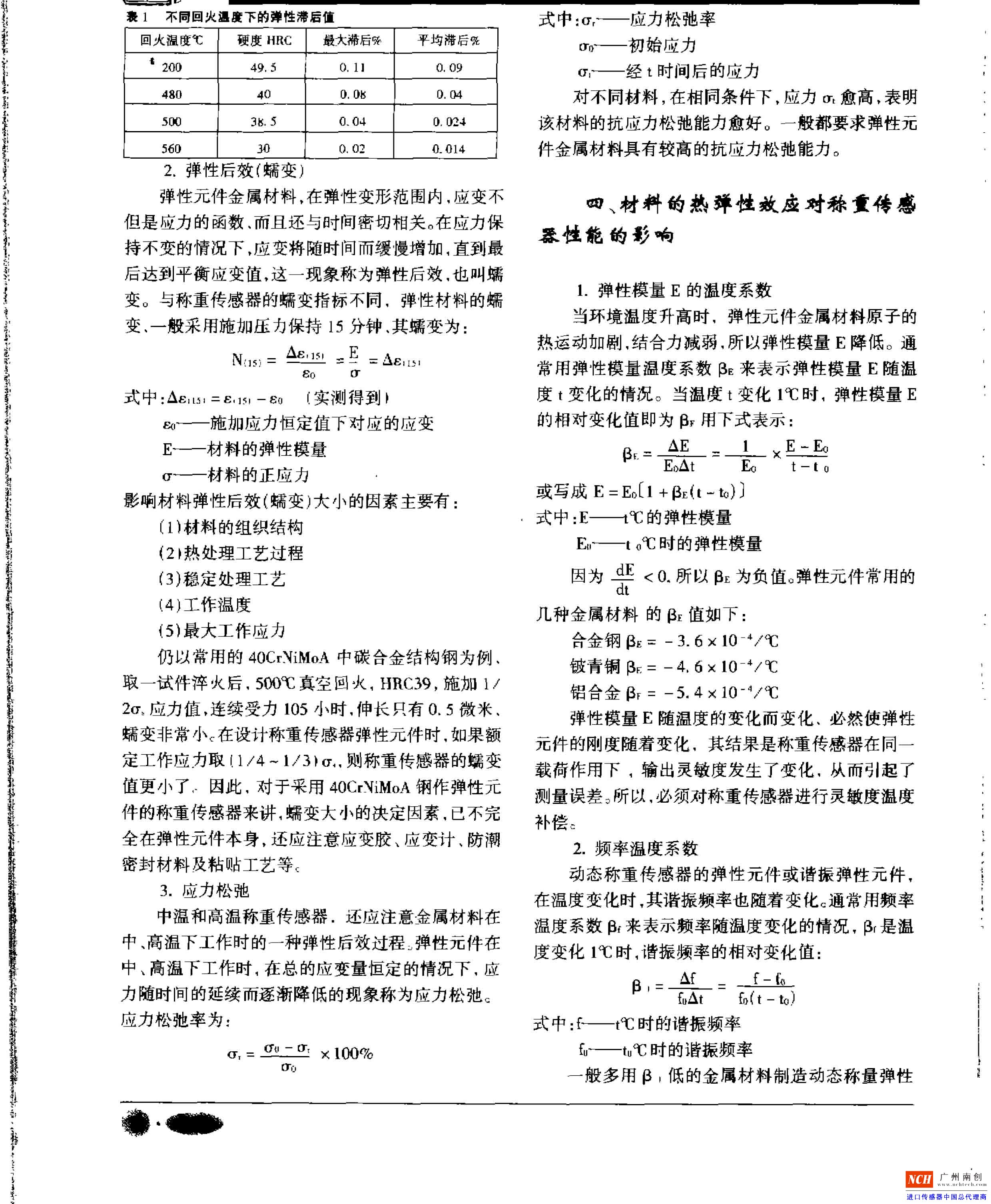 2 應力值,連續受力105小時,伸長只有0.5微米,蠕變非常小 在設計稱重傳感器彈性元件時,如果額定工作應力取(1/4—1/3) 則稱重傳感器的蠕變值更小了 因此,對于采用40CrNiMoA錒作彈性元