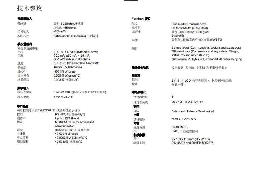 WST-3信號變送器使用Profibus DP格式提供車載現(xiàn)場總線通信。現(xiàn)場總線版本的Profibus DP、DeviceNet和Modbus Plus也可通過BLH Nobel的GATE 3S網(wǎng)絡(luò)模塊獲得。qWC廣州南創(chuàng)電子科技有限公司