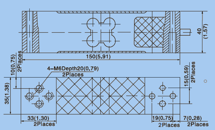 L6E-C3-50KG-2B,ZEMIC L6E-C3-100KG-2B稱重傳感器平面圖: