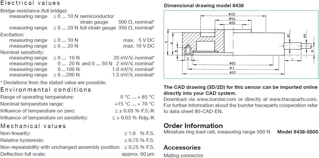 德國Burster 8438-5200微型環式稱重傳感器訂購信息: