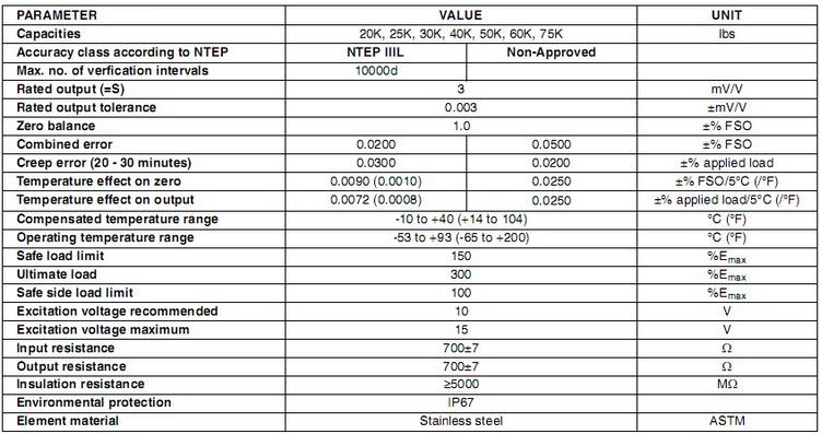 33554:  65083S-4k-5100 4000lb 20ft SENTRS 2mV/V 350 OHM NTEP Class III 5m  HS WS IP67FSP廣州南創電子科技有限公司
