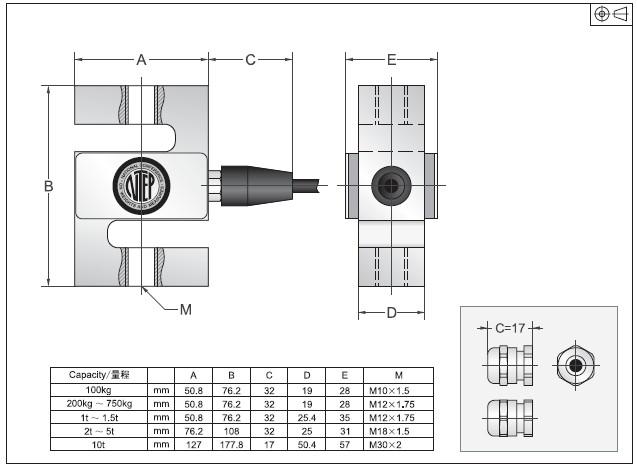 美國傳力稱重傳感器BSS-1500kg選型圖:
