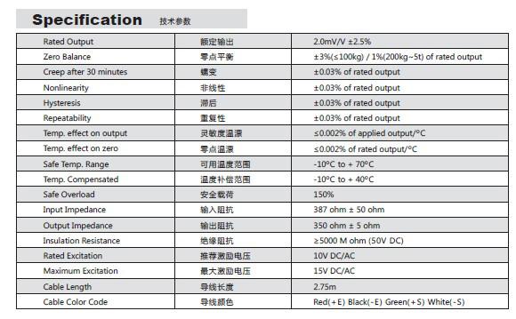 Transcell CR-5T稱重傳感器主要特性:LrD廣州南創電子科技有限公司