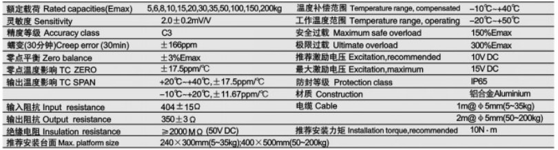 溫度對零點影響:≤0.002% 靈敏度:2 mv/v