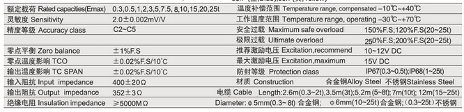 BTB-8T稱重傳感器工作溫度: -20 ~ 60°C (-4 ~ 140°F)