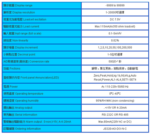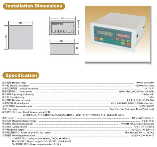 臺灣JIHSENSE JS-2200稱重顯示控制器參數(shù)圖:3bJ廣州南創(chuàng)電子科技有限公司