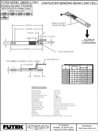 美國FUTEK力傳感器LBB200規格圖:gAN廣州南創電子科技有限公司