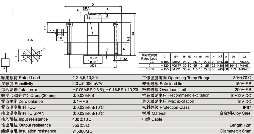 LFSC-A-10t稱重傳感器技術參數特點:RpN廣州南創電子科技有限公司