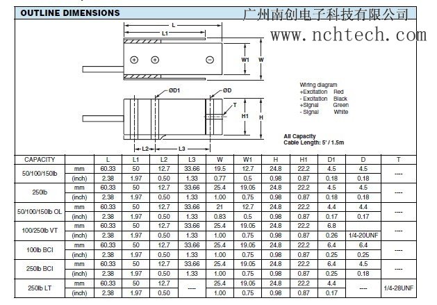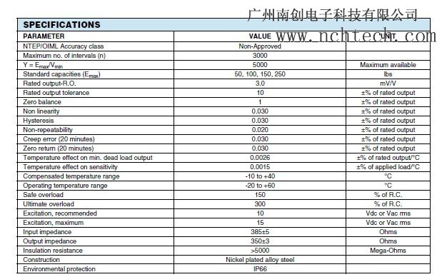 美國celtron稱重傳感器MBB-250kg 技術參數: