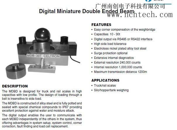 美國世銓Celtron MDB雙剪切梁式稱重傳感器專為卡車和鐵路的低配置高容量規模設計。在裝載過程中不易受負載影響。