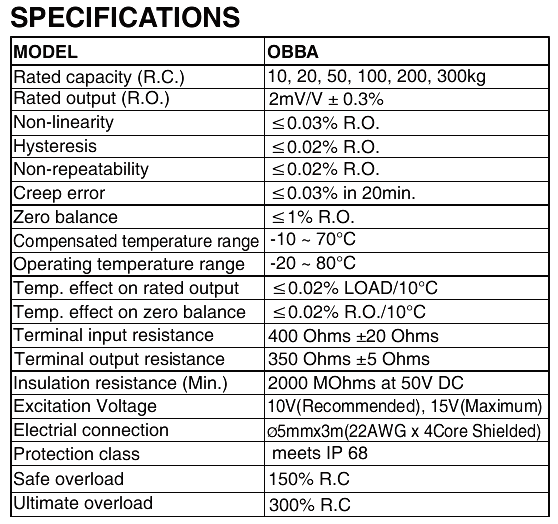 韓國bongshin OBBA-300傳感器系列其他量程:
