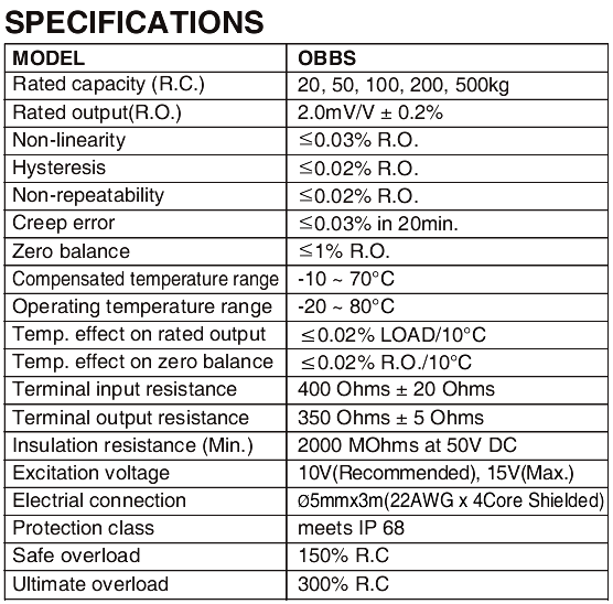 bongshin OBBS-20kg稱重傳感器量程: