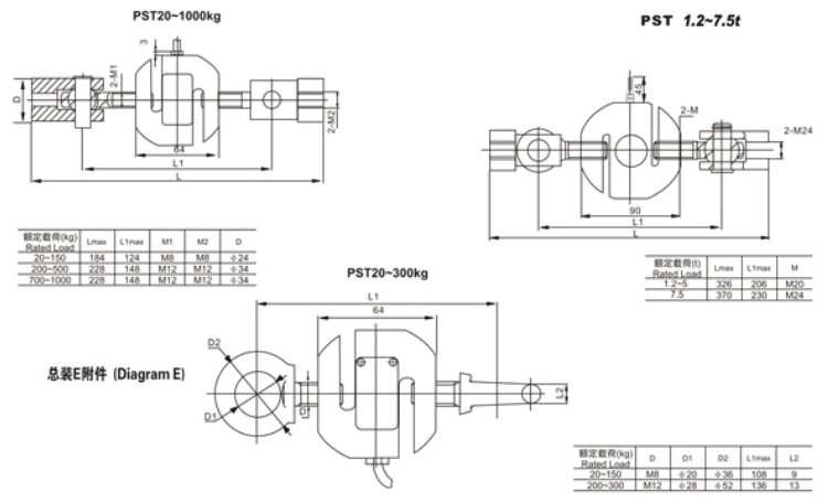 7.5t,PST-10t。PST-A-20kg,PST-A-30kg,PST-A-50kg,PST-A-750kg,PST-A-100kg,PST-A-150kg,PST-A-200kg,PST-A-