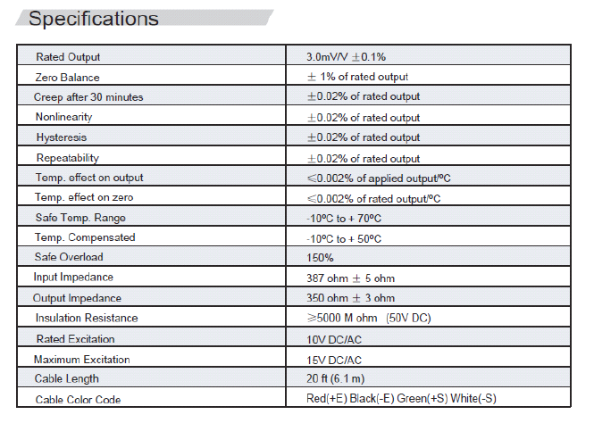 美國Transcell SBSB-SBSB-2000kg稱重傳感器技術參數圖: