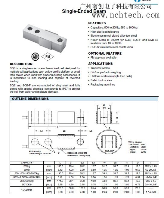 SQB、SQB-F、SQB-SS量程1K到10KLB,獲得NTEP Class III 5000M認證6Wf廣州南創電子科技有限公司