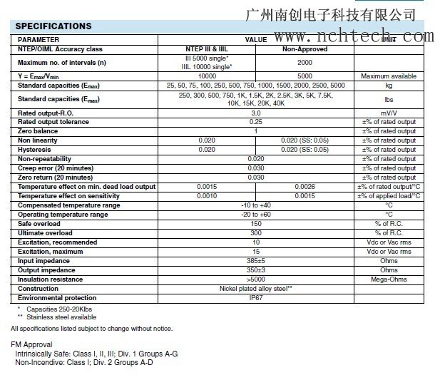 額定載荷Standard capacities (Emax) :5, 7, 10, 15, 20, 30, 50, 60, 75,100, 150, 250, 300, 500, 635, 800, 1000  kgbVy廣州南創電子科技有限公司