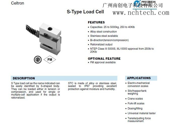 美國Celtron稱重傳感器其它相關產品型號:bVy廣州南創電子科技有限公司