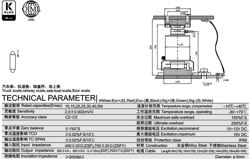 應用場合: 汽車衡、軌道衡、軸量秤、地上衡
